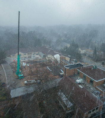 Temporary shoring and temporary barricades were erected so demolition of existing buildings could be safely completed in all 4 phases. All excavation and underpinning was completed in stages to allow for footing placement and poured in-place foundation walls to be completed.